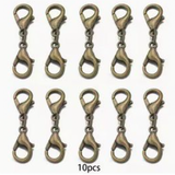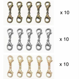 HARDWARE: Alloy Double Head Lobster Clasps: 30pcs: 10 Antique, 10 Nickel Silver, 10 Gold colour
