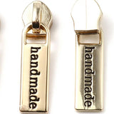 HARDWARE: Metal Zip Slider with "HANDMADE" Zipper Pull x 1: SIZE 5: Gold colour