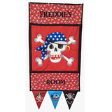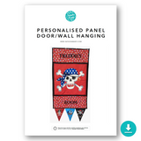 "Sometimes you get a panel and want to make something more than 'just another cushion' but it is not quite big enough for a quilt. When I saw the pirate panel, I knew straight away I wanted to create something different with it and by combining it with the bunting panel, I came up with the door-hanging idea - then I thought, why not personalise it as well?