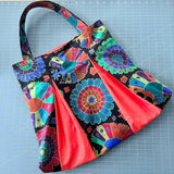My passion for colour is shared by the wonderful Brandon Mably, from the Kaffe Fassett Collective. When I began selecting contrast plain fabrics to accompany our designer prints, he would often describe the colour as being "the little bit of chilli on top". I decided wanted to design a bag with a flash of chilli; a pop of colour to bring out the 'wow' factor in the feature print. I am therefore delighted to share with you, the Pleated Bag... Natasha