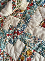 "This is a fun, quick quilt to make. The blocks start off as simple strips and become a complex-looking linked block. It's a weekend make, that looks like you spent hours piecing it."