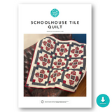 " Living in Staffordshire, I quite often see Minton tiled floors in everyday places; they give me lots of inspiration for patchwork blocks and I can frequently be seen taking photographs of the floor! I made the first version of this quilt up in Art Gallery Fabrics from the Maven fabric collection, designed by Maureen Cracknell. As a maven is a person who is an expert on a particular subject and the finished quilt has a tiled look, I have named this the Schoolhouse Tile Quilt."