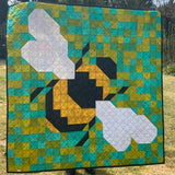 Designer Tracy Perks was initially asked by a friend to make a bumble bee cushion for her new grandchild. She designed the bee in squares and half square triangles, making it in 1 inch finished squares, which she did not enjoy! Approximately 18 months later the pattern was revisited, upscaled and transformed into a quilt pattern - the Bumble Bee quilt was born.