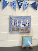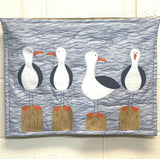 "This quirky, flock of seagulls appliquéd wallhanging can easily be adapted to make into a small cushion or quilt blocks. Using bonded appliqué this fun project can be embroidered by hand or machine."