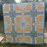 "Inspired by the beautiful Thameside fabric collection from The Original Morris & Co, this quilt uses simple piecing of squares and rectangles to create an elegant and timeless design. Some clever fussy cutting of your fabrics will both showcase feature prints and add to the illusion of a wavy border. I chose to finish off with straight line quilting to achieve a sunburst effect."