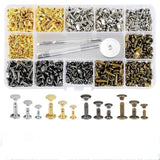 - 360 sets of double cap rivets in 4 colours (gold, silver, antique bronze and gunmetal), 2 sizes (6mm, 8mm)