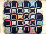 This craftily clever technique gives a similar effect to that of Orange Peel patchwork, without any of the hassle of painstakingly piecing fiddly curves! Once you have the hang of cutting and sewing your circles - which was made super easy for me, courtesy of the Fiskars Circle Cutter – all that remains is the marking of squares and sewing of straight seams to piece this quilt. There is the option to include a thin layer of wadding within each circle should you wish… no sandwiching of layers and no need to bind.