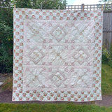 "Squares and Flying Geese units come together to create a tranquil and calming design that reflects the beautiful ‘shabby chic’ fabrics from the Cottage Linen Closet collection from Brenda Riddle. This design will look great in soft floral or modern bright and bold prints; you’re sure to use this pattern time and time again."