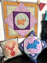 - Four co-ordinating fabrics: a minimum of a long quarter of each for the cushion, or 0.5m of each for the quilt