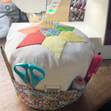 "I don’t think it’s possible to have too many pincushions. This one has handy side pockets to hold useful notions, and the cute little English Paper Pieced top gives the pincushion a classic look. You'll soon be making more to gift to your sewing friends!"