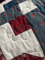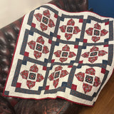 "Living in Staffordshire, I quite often see Minton tiled floors in everyday places; they give me lots of inspiration for patchwork blocks and I can frequently be seen taking photographs of the floor! I made the first version of this quilt up in Art Gallery Fabrics from the Maven fabric collection, designed by Maureen Cracknell. As a maven is a person who is an expert on a particular subject and the finished quilt has a tiled look, I have named this the Schoolhouse Tile Quilt."