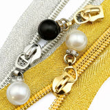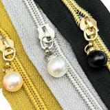 HARDWARE: TRIO of Metal Zip Sliders with PEARL & DIAMANTE Effect Zip Pulls: Size 5: Assorted colours