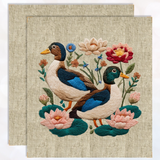 PANEL SET: Linen Effect, 1 Pair: Approx 18" square (45cm x 45cm) each: Ducks on Linen 3
