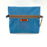 "This pouch was designed to show off the simple, elegant beauty of a new range of yarn dyed 100% cotton chambray woven fabrics that came in. Chambrays are produced with a dyed yarn and a white yarn, to create beautiful soft tones, making them the perfect compliment to your designer fabric stash - but also glorious in their own right! This make "sits up" so that the pouch (and the fabric) can be admired." - Natasha