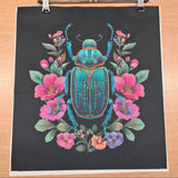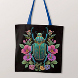 PRECUT PANEL: Waterproof Canvas TOTE BAG Panel: Approx 40cm x 45cm: Beetle with Blooms