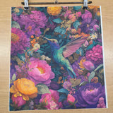 PRECUT PANEL: Waterproof Canvas TOTE BAG Panel: Approx 40cm x 45cm: Floral Hummingbird