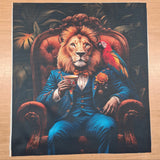 PRECUT PANEL: Waterproof Canvas TOTE BAG Panel: Approx 40cm x 45cm: Gentleman Lion Drinking Tea