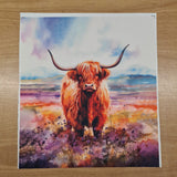 PRECUT PANEL: Waterproof Canvas TOTE BAG Panel: Approx 40cm x 45cm: Watercolour Landscape with Highland Cow